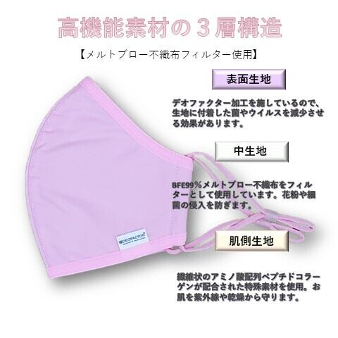 中生地 :BFE99%メルトブロー不織布をフィルターとして使用し、花粉や細菌の侵入を防ぐ!