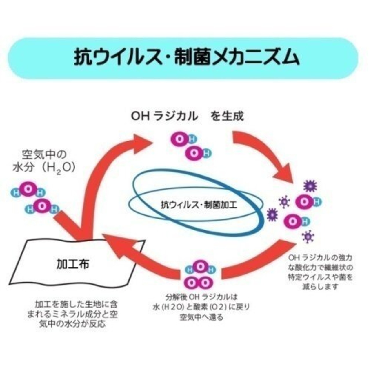 【外側生地】デオファクター加工を施し、付着した菌やウイルスを減少させる効果があります。(デオファクター・制菌加工 ポリエステル65%、綿35%)