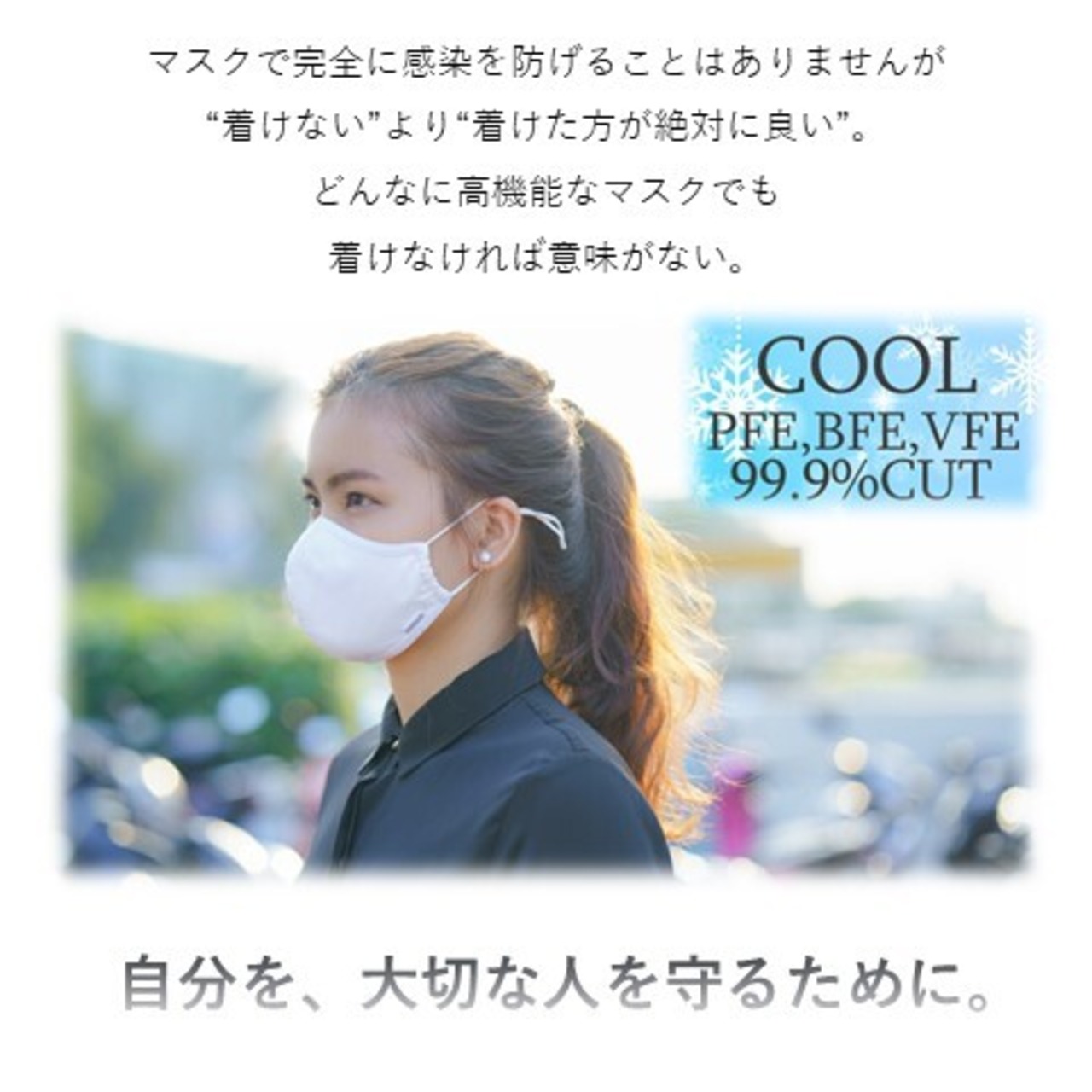 暑い夏でも、ひんやりした生地のマスクで快適な付け心地!